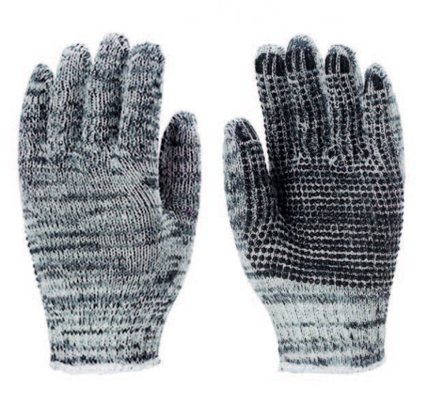 Utilizada em atividades na construção civil, manutenção reparo e operação, operação com transporte de objetos leves, atividades logísticas, jardinagem e paisagismo, agricultura, montadoras, manutenção industrial, automotiva e outros. Luva tricotada confeccionada em fios naturais e fios sintéticas, sendo 2 fios algodão cinza, 1 fio de algodão branco e 1fio de poliéster preto, com pigmento em PVC na palma