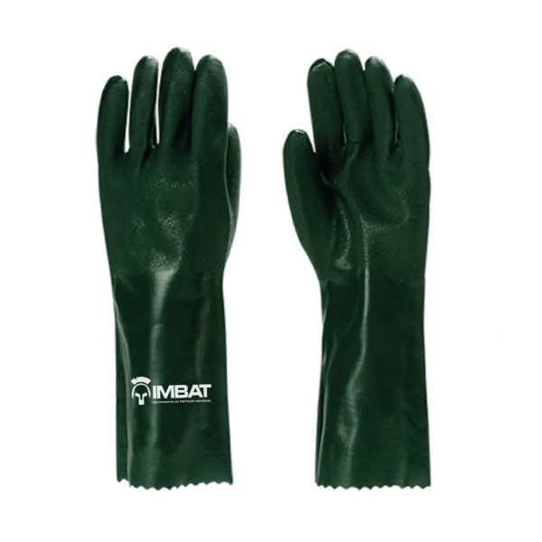 Utilizado em Construção civil, saneamento básico, posto de gasolina, siderurgia, manutenção industrial, conservação, mineração, coleta seletiva, galvanoplastia, processamento químico e petroquímico. Luva confeccionada com forro em algodão com revestimento total em PVC, dedos e o dorso áspero. Com o punho de 36 cm.